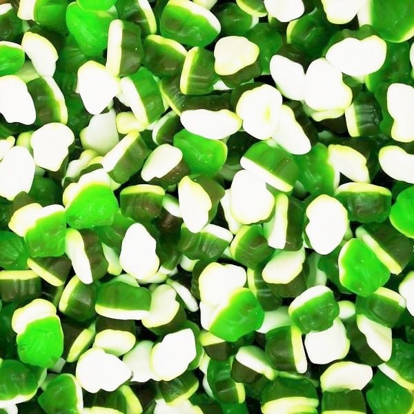 The sweet, fruity and tasty frogs are a mix of green fruit gum and white foam sugar. The cute hoppers stand out with their beautiful green coloring and are extremely eye-catching. Simply to kiss!