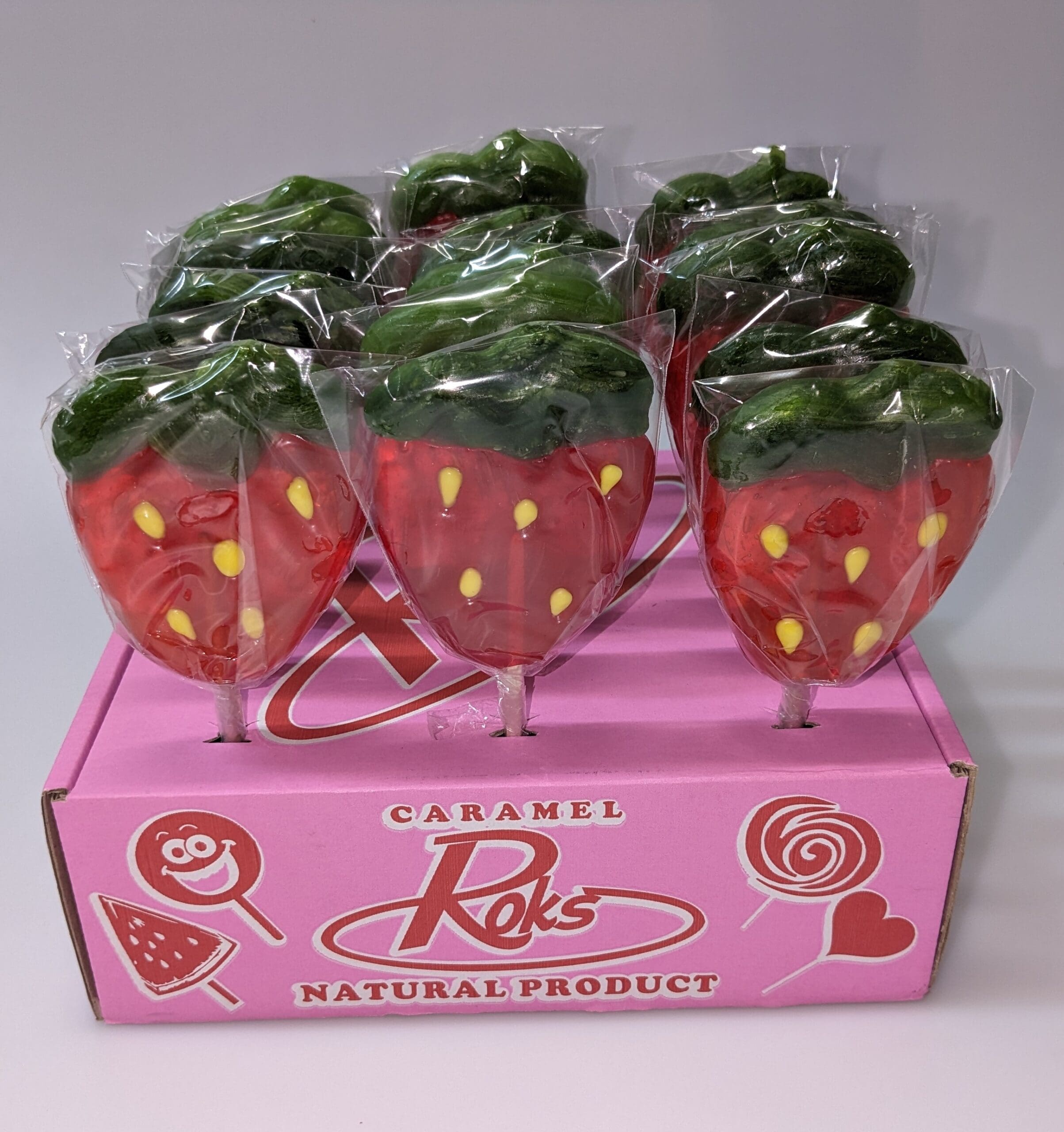 Sugar, glucose syrup, citric acid, flavors (strawberry), colors (carmine red, curcumins, chlorophylls)